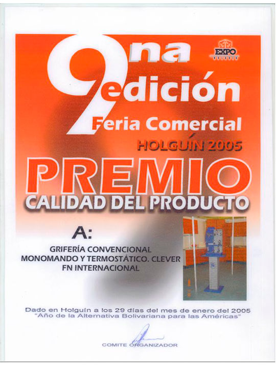 Expo Holguín 2005 .Premio a la calidad del producto