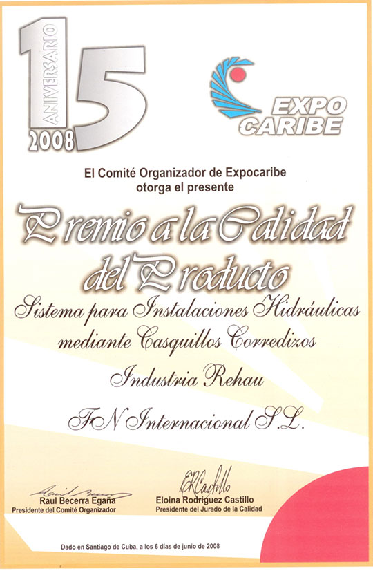 Feria Internacional de La Habana 2004. Medalla de Oro: Valvulería Económica STD y Grifería Clever. Medalla de Oro: Sistema de Tubos Industriales RAUPEX. Medalla de Oro: Mueble de Cocina económico para viviendas, consultorios y policlínicos. TPC