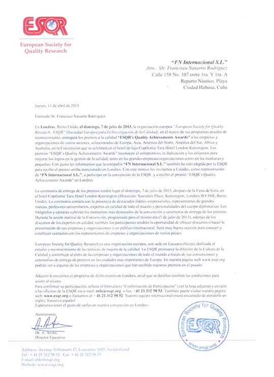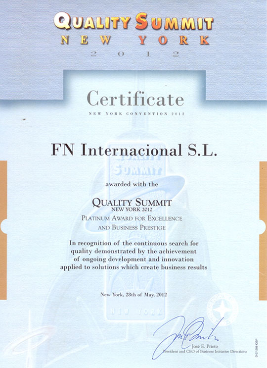 FN Internacional SL, ha trabajado en muchos países, de su constitución en el año 1985 y actualmente labora en Francia, Líbano, Rusia, México, República Dominicana, Panamá y Cuba. De manera muy significativa por el resultado de su labor comercial en Cuba, ha cosechado un expediente comercial durante casi 20 años, que la hace relevar en el mercado cubano por las diferentes Ferias Comerciales que ha participado durante estos años tales como FIHAV, FECONS, EXPO CARIBE, EXPO HOLGUIN, EXPO CIEGO, EXPO VARADERO, entre las más importantes recibiendo en cada uno de ellos Premios a la Calidad de sus Productos presentados y que comercializa así mismo por el trabajo desarrollado en Cuba fue Premiado en eventos Internacionales en Paris 2011 International Star For Leadership in Quality Awaerd y en New York 2012 Quality Summit Platinum Award For Excelence And Business Prestige. Ha sido propuesta a otros premios internacionales, donde no ha podido participar.